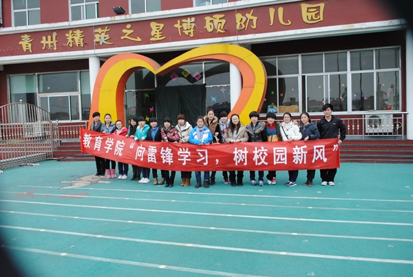 3月8日下午,学前教育学院团总支学生会组织20余名学生干部,到青州市博硕幼儿园举行了“向雷锋学习树校园新风”联谊活动,受到了幼儿园小朋友和老师们的热烈欢迎。此行,我院的学生不仅给幼儿园的教师们带去了三八国际妇女节的祝福,还进行了一次卓有成效的社会实践活动。