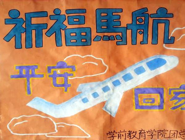 自3月8日发生失联事故以来,马来西亚航空失联班机至今仍音讯全无,失踪飞机上载有239人,其中有154名中国乘客,这起意外的事故发生引起了社会各界的广泛关注。3月10日,学前教育学院学生并自发的以班级为单位组织起来,开展写许愿条、折千纸鹤、折星星等一些列小活动为马航祈福,同一天,学前教育学院团总支·学生会也贴出海报,一起为马航祈福,祈祷他们能够早日与家人取得联系,早日回归家园。