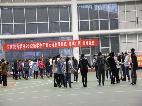 为了增强班级的凝聚力,搞好班级建设,提高学生干部的心理素质,2012年11月3日上午,学前教育学院在我院体育馆举行了2012级学生干部心理拓展训练活动。活动邀请了汇康心理咨询中心的曹永旺老师做活动主持,基础教学部刘万韬、李菁华、付超等老师参与活动组织。