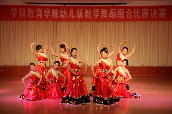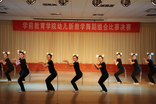 经过预赛的激烈角逐,2013年1月3日下午,在学前教育学院实训中心多功能厅组织举办了“幼儿舞蹈教学组合竞赛”决赛。这次比赛由学前教育学院艺术系的老师担任评委。