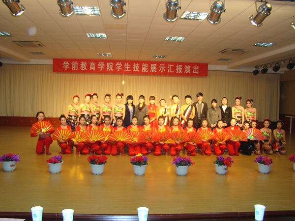 2011年12月21日下午3:30分,由教务处组织、学前教育学院主办的学前教育学院学生技能展示汇报演出在实训中心9304多功能厅拉开了帷幕,各院系领导、评委及学前教育学院的领导老师出席并观看了演出。