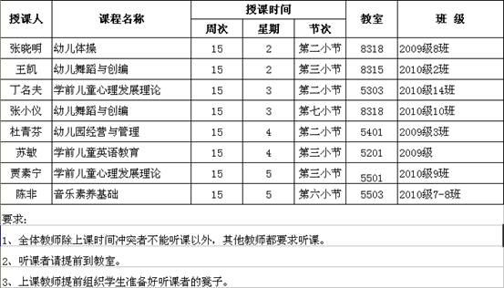 2010-2011学年第二学期新教师听课时间安排
