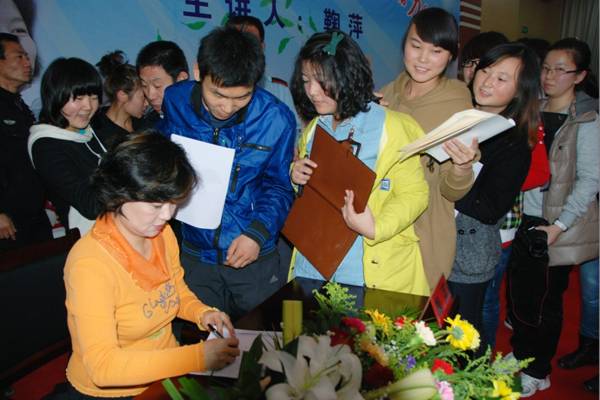 下午3点30分,鞠萍姐姐出现在学院大门口。鞠萍姐姐清新活泼、纯真甜美的形象,引起在场师生雷鸣般的掌声和喝彩声,鞠萍姐姐来到同学们中间,热情的和同学们握手,为学生签名,并和学前教育学院的全体师生合影留念。合影留念结束,鞠萍姐姐刚起身,同学们齐声喊出了“鞠萍姐姐请等一等,我们为您唱首歌”的心声,一曲“大风车吱呀吱悠悠转,这里的风景啊真好看……”让鞠萍姐姐感动不已,热泪盈眶。