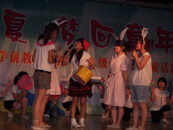 为了进一步贯彻“教学做一体化”的理念,促使学生从儿童文学理论向工作岗位能力的转化,为学生将来走入幼儿园奠定坚实的基础,学前教育学院在6月4晚举办了主题为“绚烂一夏,梦回童年”的2008级学生童话剧大赛。