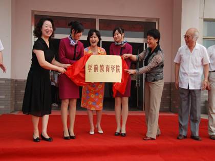 6月24日,学前教育学院正式挂牌。我国央视著名少儿节目主持人鞠萍姐姐与潍坊市教育局副局长李端梅同学院党委副书记、院长李琳共同为学前教育学院揭牌。