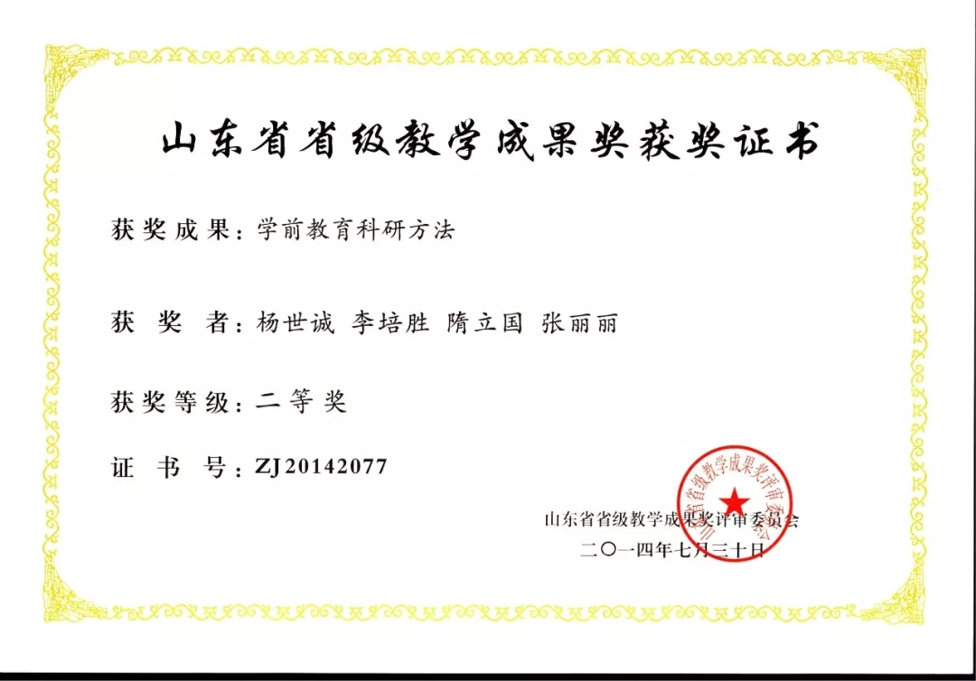 “三维”育人,培养人民满意的幼儿园教师,我们收获着累累硕果。先后获批“学前卫生学”等6门省级精品课程,儿童文学等3门省级特色课程。我主编的《学前教育科研方法》教材获批山东省高等学校优秀教材一等奖,《幼儿卫生学》等9种专业教材获评国家规划教材。《中国教育报》(2009年1月1日)以“教、学、做一体化”为题报道我院学前教育专业建设成果。
