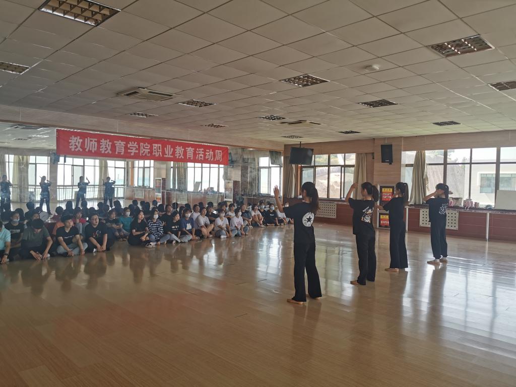 2021年5月24日下午,教师教育学院在9301教室举办职教活动周系列活动——舞蹈实训室开放日活动,2019级、2020级部分学生参加活动。