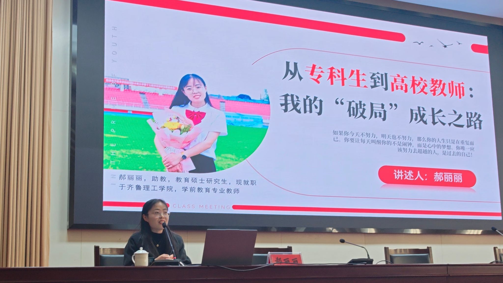 本期讲座邀请了2009届毕业生赵梦巧、2015届毕业生郝丽丽、2018届毕业生矫立乐三位优秀校友分享她们的奋斗历程与职业智慧。活动现场座无虚席,气氛热烈,为学生提供了一次难得的与榜样面对面交流的学习机会。三位校友的讲述各有侧重:赵梦巧分享了其从一线教师到创办两所高品质幼儿园的创业历程,诠释了“深耕专业”的力量;郝丽丽回顾了从我校毕业到考入佳木斯大学攻读硕士,最终回归高校任教的学术成长之路,展现了“不懈努力”的价值;矫立乐展示了在幼儿园管理岗位上如何发挥党员先锋作用,参与教科研项目的“基层实干”风采。